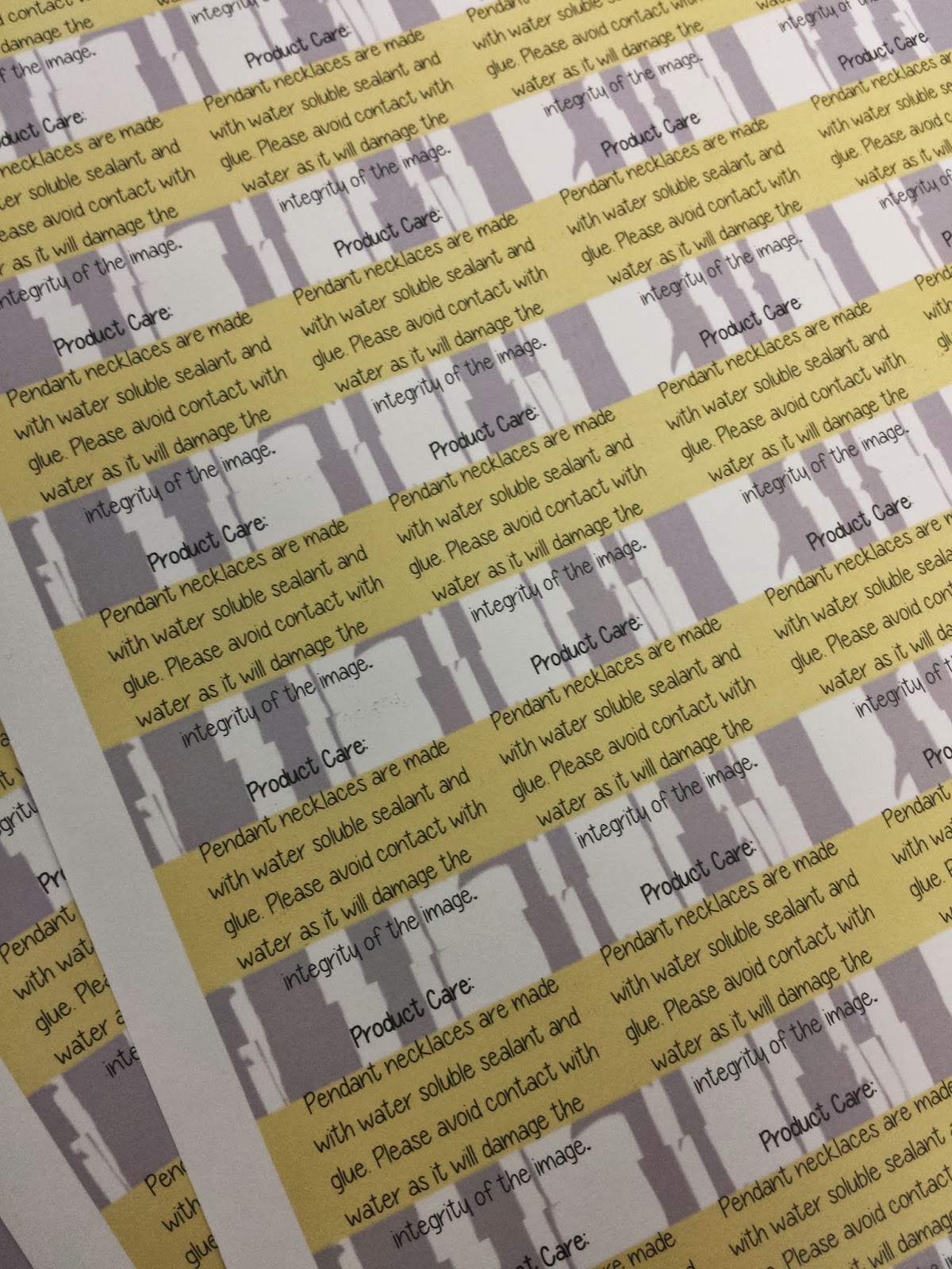 I printed "Product Care" cards....if these babies get wet, they are goner.